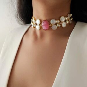 Alicia polki Necklace With earrings – Base- Silver Alloy A2 grade premium polki 18 ct micron gold plating 3 year warranty –