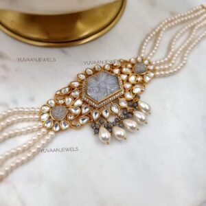 Cara Polki choker – Uncut polki choker Base – silver alloy. 22 micron gold plating Comes with a three year warranty. Comes with the earing
