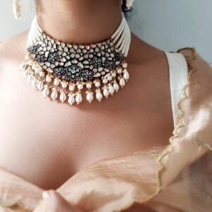 Krisha pearl and polki choker with earrings
